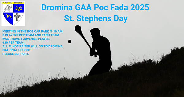 Dromina GAA Poc Fada on St. Stephen's day @ 10 am. Please support, as all proceeds will go to Dromina National School.